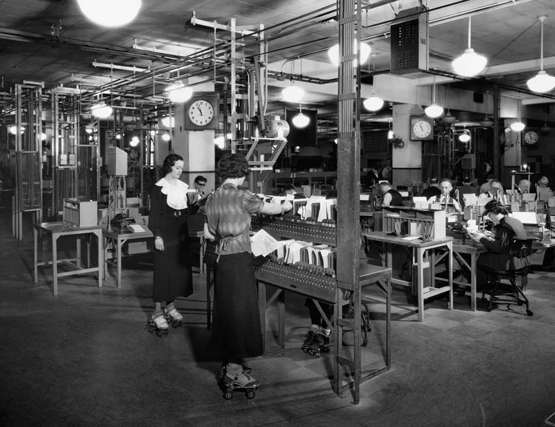 In the Traffic Department at the Western Union Office, women worked at a sorting station.