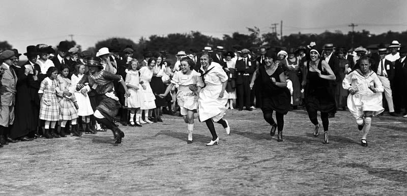 This photograph was possibly taken during a company outing for New York Telephone in Rye, New York. Notice the various forms of dress and footwear popular with young women at the time.