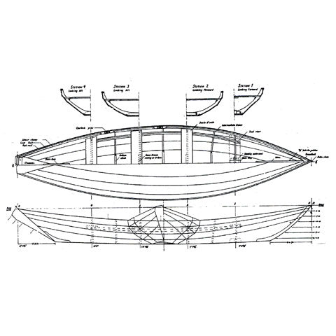 A 18’ light dory boat from Magee Island, Maine. Lines were taken by John Gardner and William Mills, 1983. Plans drawn by William Mills 1984.