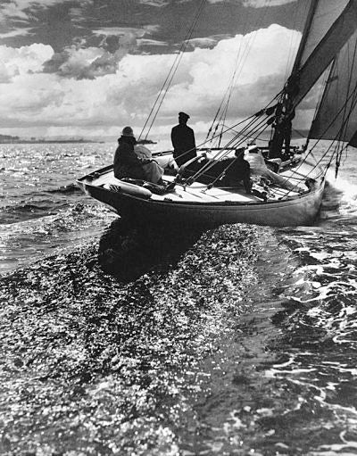 Taken by Rosenfeld and Sons on June 3, 1933. Starboard quarter view of the 12 meter sloop MOUETTE, under sail off the Nevins Yard, City Island.