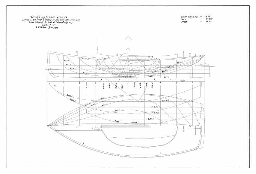 The original SANDY was a gaff-rigged centerboard sloop designed for racing in Lake Cazenovia and built circa 1855 in New York City, reputedly by George Darling of that city. She is referred to as a sandbagger after the boats which were raced up and down the East Coast during the late 1800's. A fast, pretty boat Sandy has a counter stern, single mast and flat keel - one of the last flat keeled boats built, since later sandbaggers had a rockered keel. Traditionally, she would have carried eight to ten adults for racing, four for pleasure cruising.
