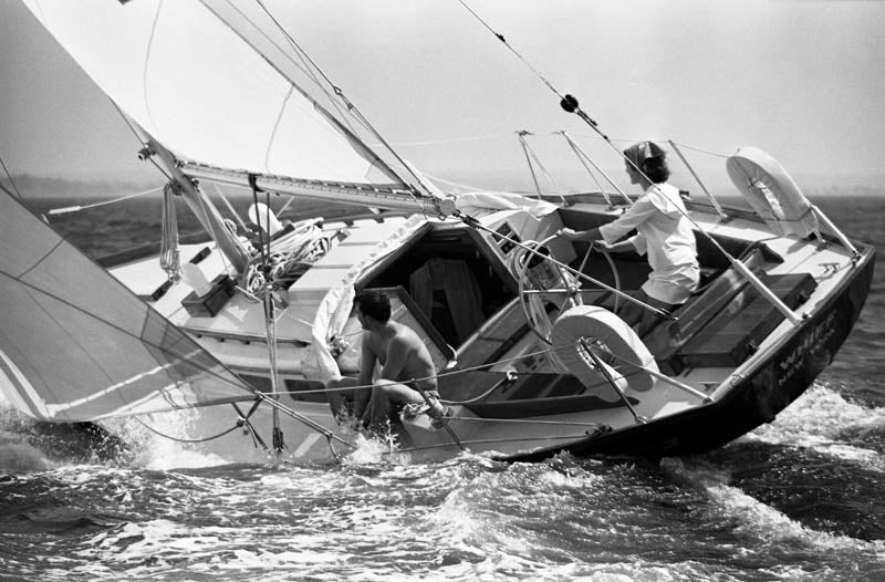 At the 5.5 U. S. Championships Races, this woman steers the 35-ffoot, 9-inch sloop WHIFF.