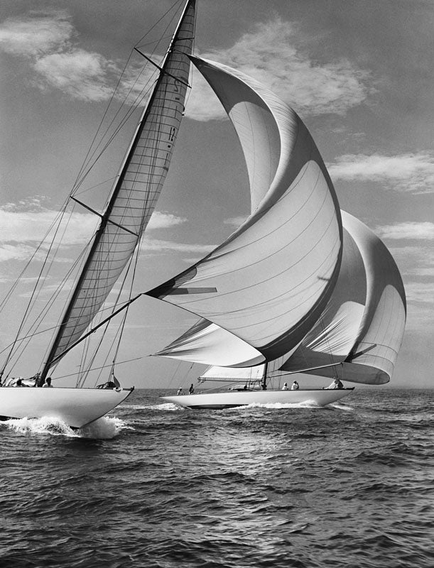 At the end of the 1930s we wondered if the J-boats would ever race again, as they had become too expensive to maintain, The smaller 12-meter class was becoming the yacht of the times. Nightwind and Zio are on a cruise from Glen Cove to New London and are reaching down the middle of the Sound well off the Connecticut shore in a freshening afternoon southwesterly.
